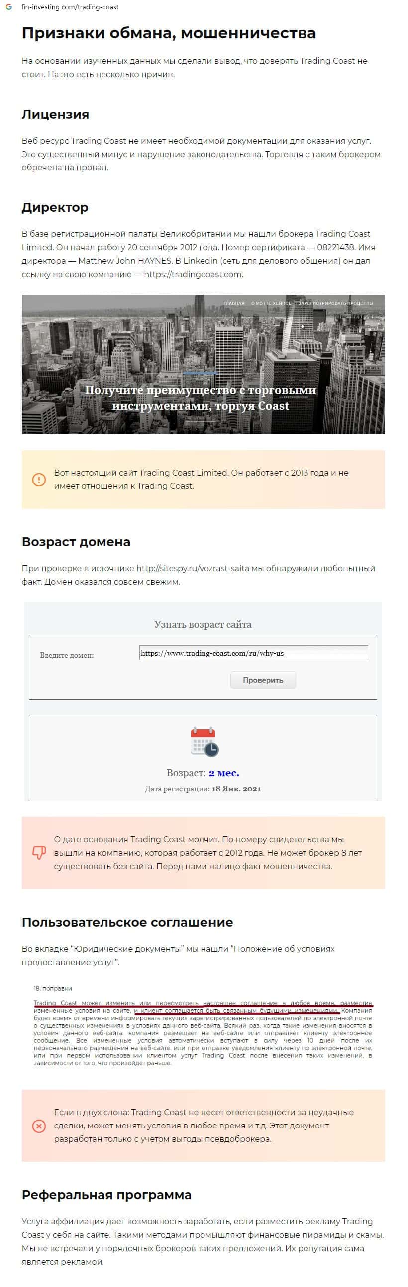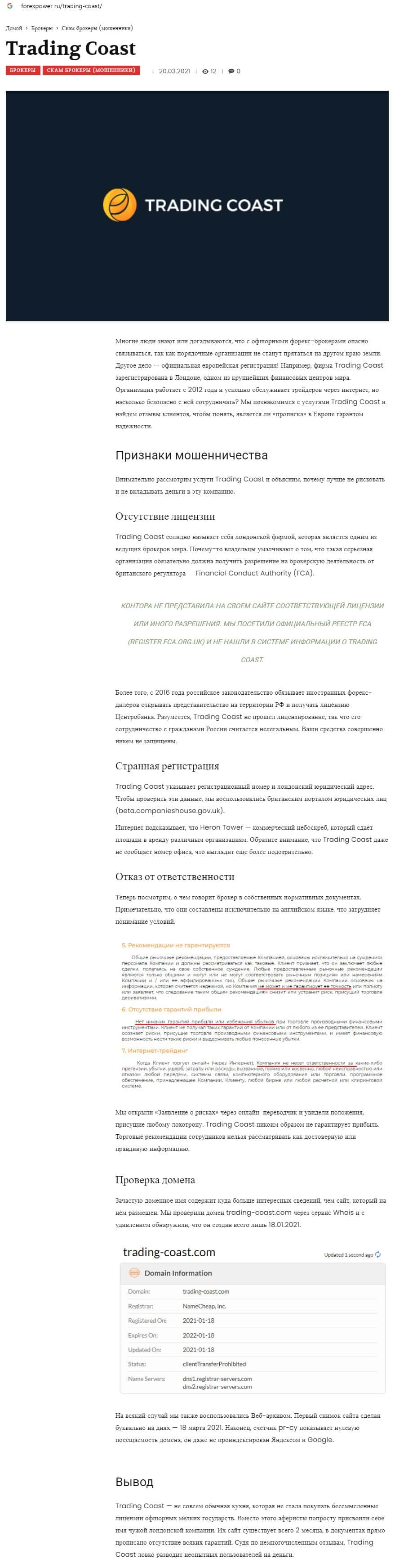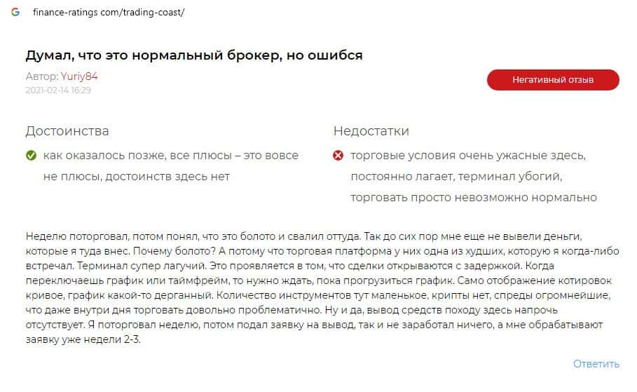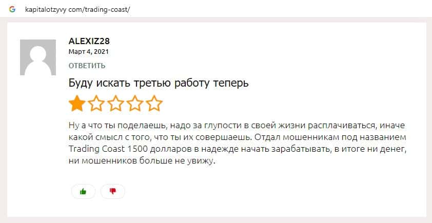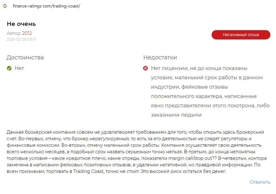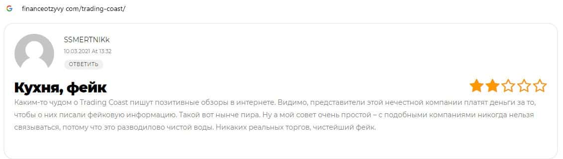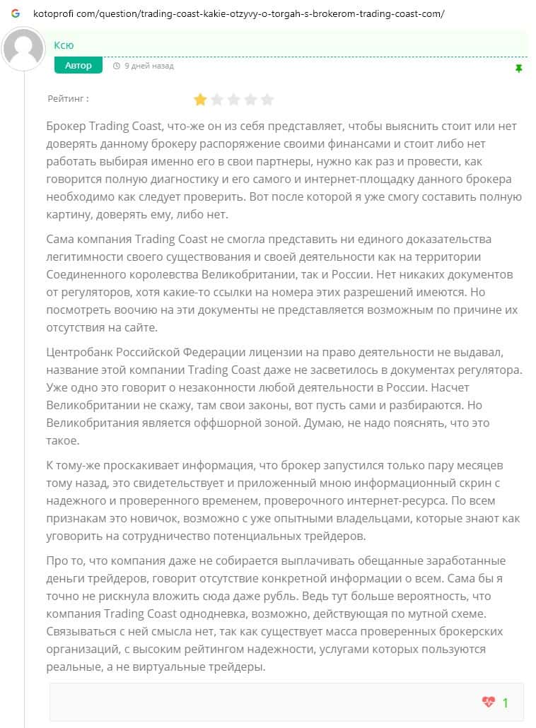 - Мошеннической организации Trading Coast пользователи не доверяют