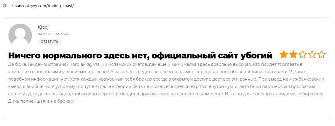 Трейдинг Коаст - обзоры псевдо-брокера на других интернет-порталах