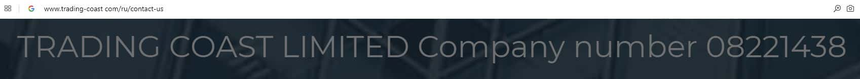 На своем официальном сайте шулера Trading Coast предоставили вероятно вымышленный регистрационный номер своей компании, который представлен на скриншоте ниже.