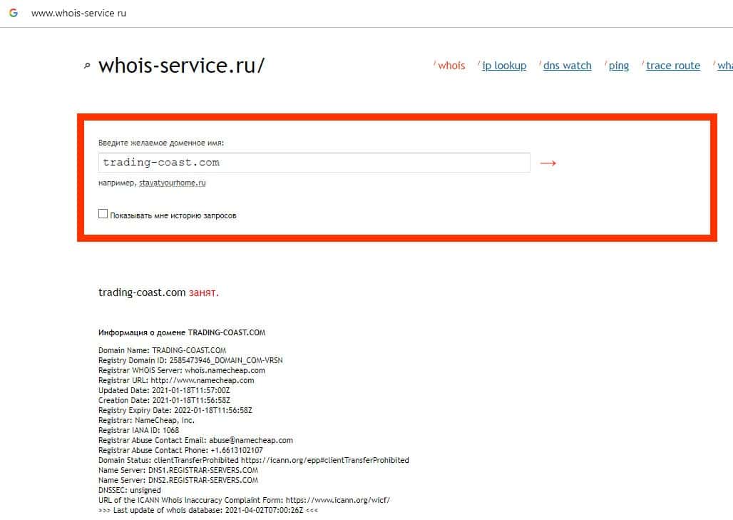 Сервис whois-service ru не может найти данные о владельце домена сайта псевдо-брокерской организации Trading Coast, доверять сайту данной скам-конторы нельзя.