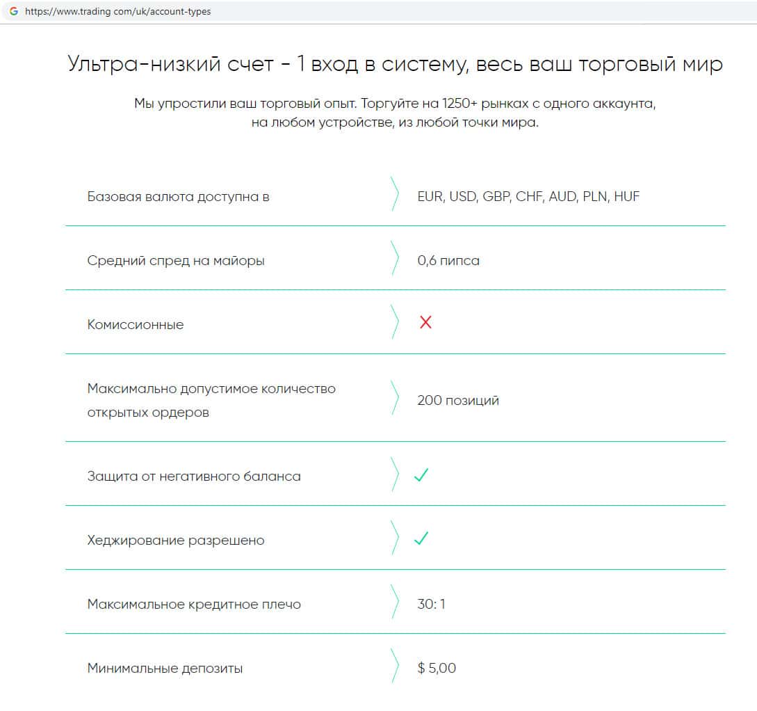 - Типы торговых счетов, которые предлагает брокер Trading Com