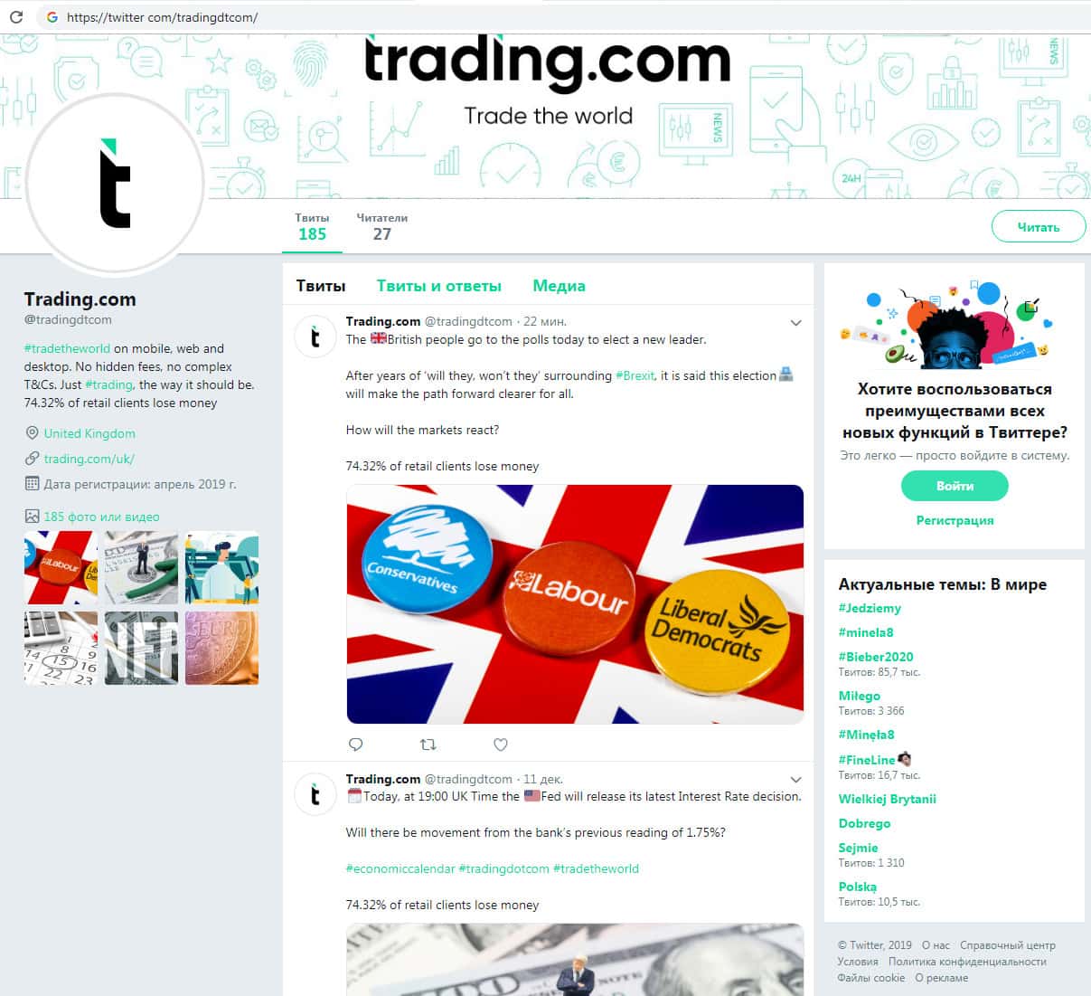 - Скам-брокер Трейдинг Ком вовлекает клиентов с социальной сети Twitter