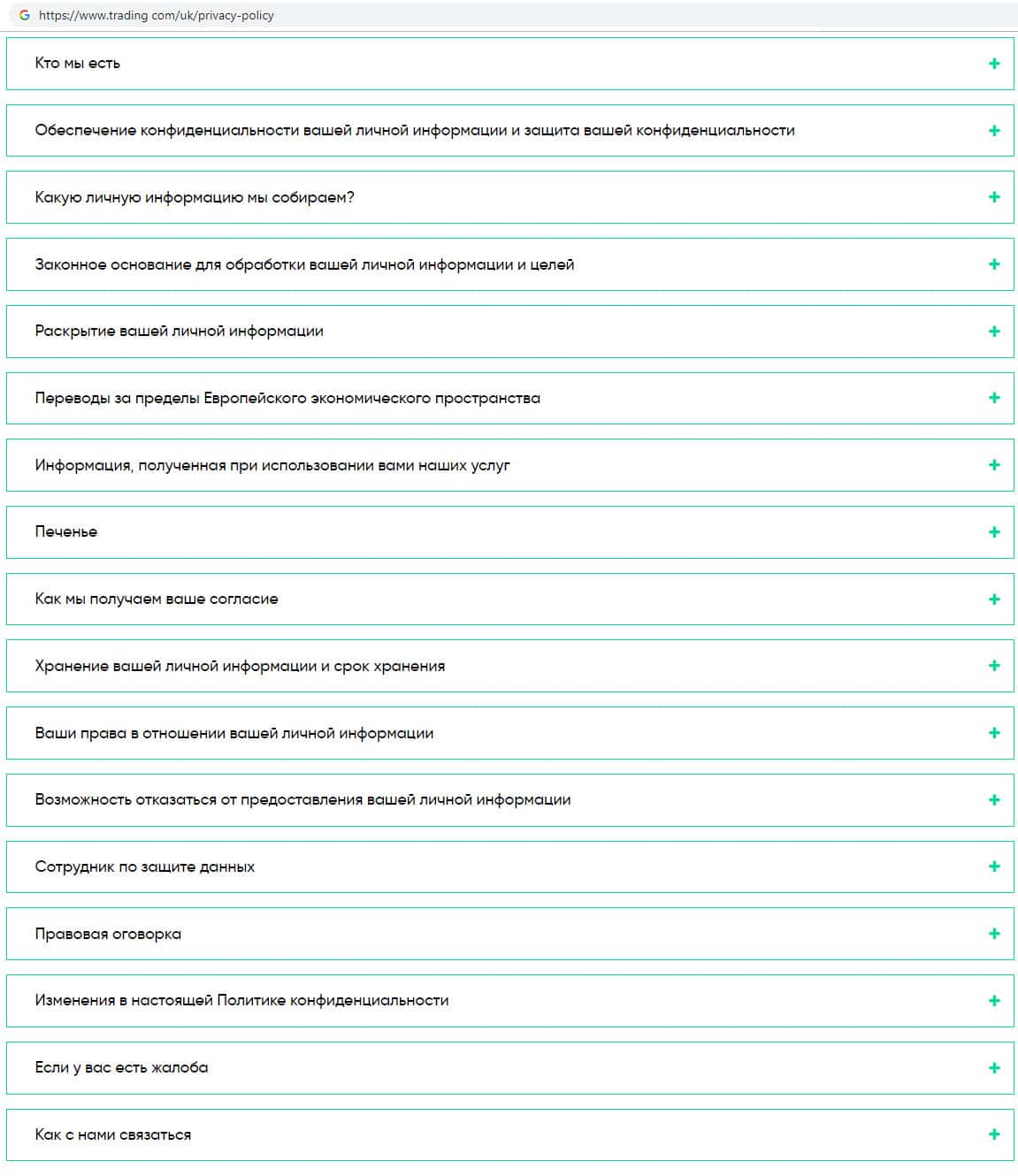 - Политика конфиденциальности мошеннической организации Трейдинг Ком