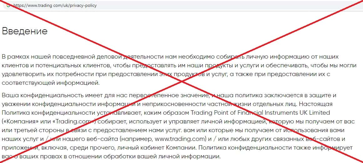 Политика конфиденциальности мошеннической организации Трейдинг Ком
