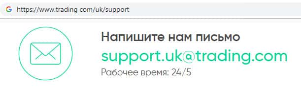 - первый адрес электронной почты: support uk@trading com