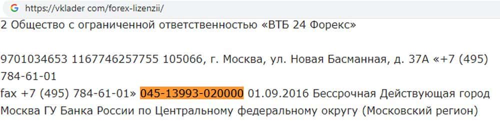 На сайте vklader com находим информацию, что лицензия под номером 045-13993-020000 действительно выдана брокеру-мошеннику ВТБ форекс. Это еще один подельник аферистов TradingPR Org, через платформы которого происходит слив денег наивных новичков. Лже-обучающий центр поставляет клиентов форекс-разводилам.
