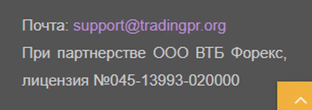 Своей лицензии у биржевых пройдох Трейдинг ПР нет, по крайней мере они о ней нигде не упоминают. Зато жулики указывают, что являются партнерами конторы ООО ВТБ Форекс, у которой есть официальная регистрация. Видимо, аферисты из псевдо-академии Трейдинг ПР считают, что это является достаточным основанием для предоставления услуг.