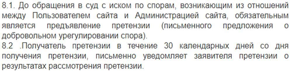 Даже обещания, которыми проходимцы Трейдинг ПР кормят клиентов, выглядят размытыми и неопределенными. А в единственном документе, который можно принять за соглашение, говорится о том, что претензии к жуликам решают... сами жулики. Составлен этот "документ", кстати, коряво и с явными ошибками.