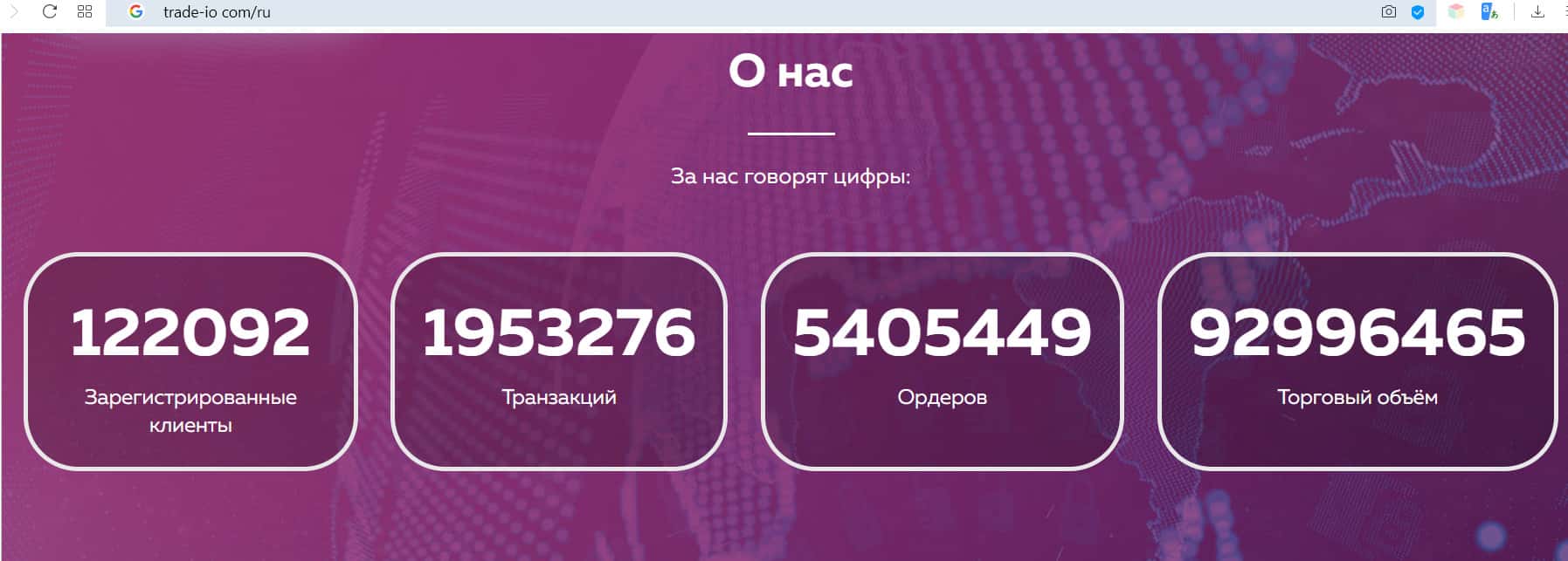 Для того, чтобы показать, как активно ведется торговля на их площадке, жулики из компании Трейд Ио пишут на главной странице огромные цифры о своих клиентах, количестве транзакций, объеме торгов. Разумеется, все они поддельные. На сайт, скорее всего никто не заходит, так как активность на нем нулевая.