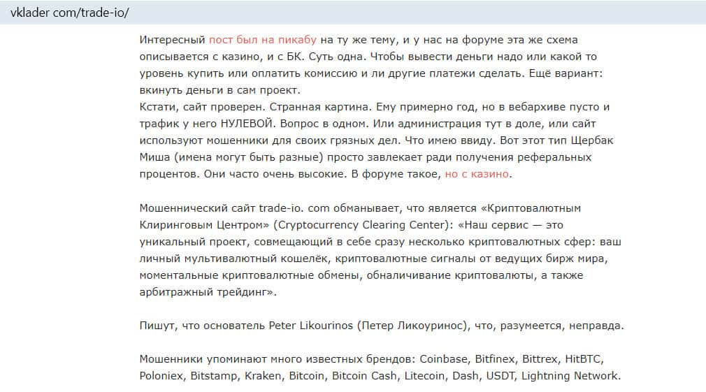 - Источники, используемые для написания статьи о мошенниках из Трейд Ио
