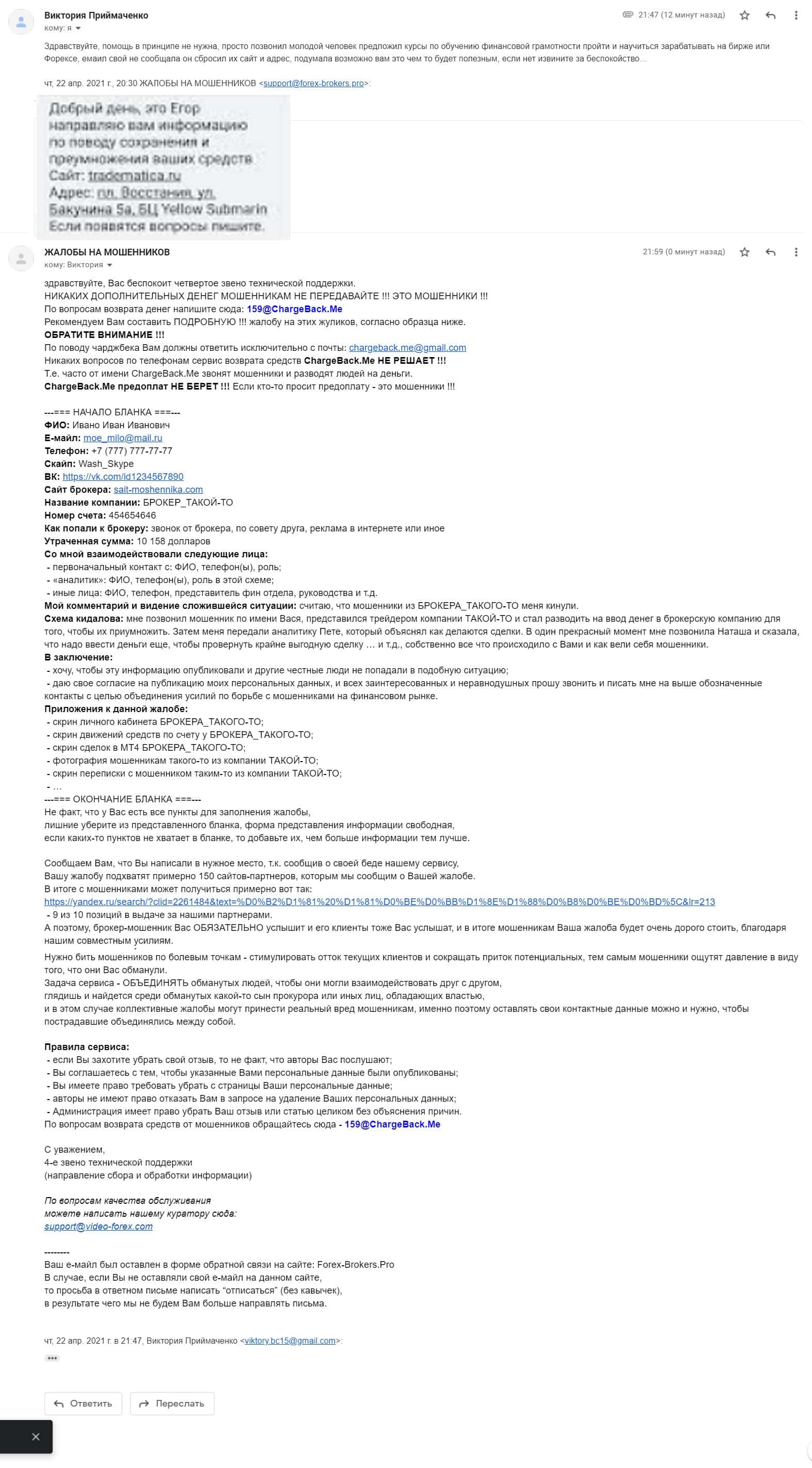 На почтовый адрес сайта по сбору информации о деятельности мошенников Форекс пришла жалоба на аферистов Трейдматика, которые обманули клиента на 10 158 долларов.