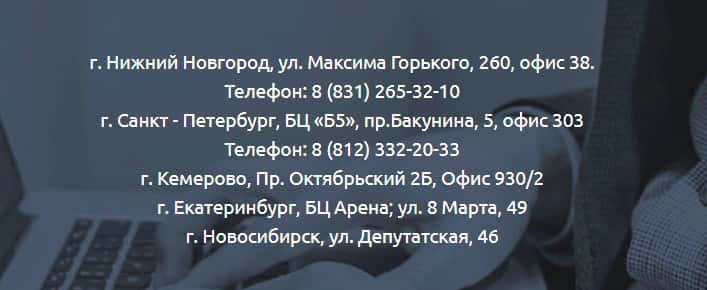 Мошенники выложили на свой сайт адрес офиса, где находится их контора, а также представительств в других городах.