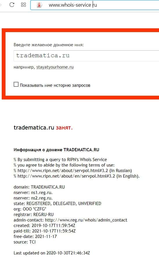Кому принадлежит доменное имя сайта Tradematica Ru?