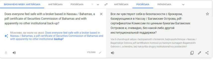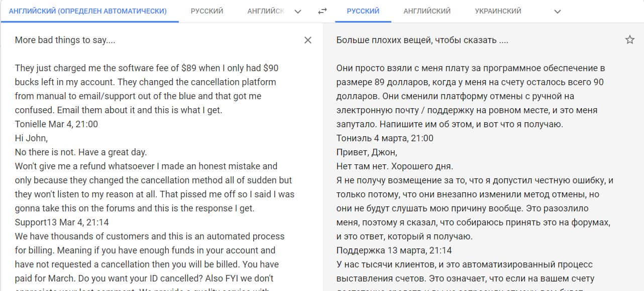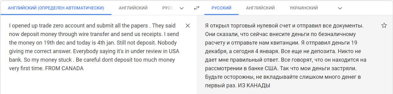 Перевод отзыва о мошенниках на сайте translate.google com