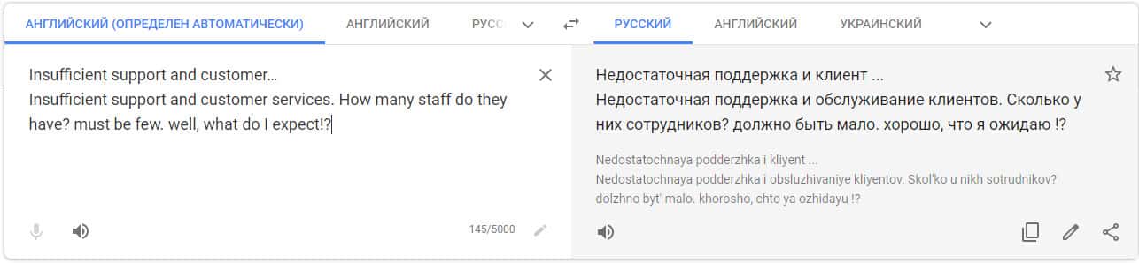 Перевод отзыва на сайте translate.google com