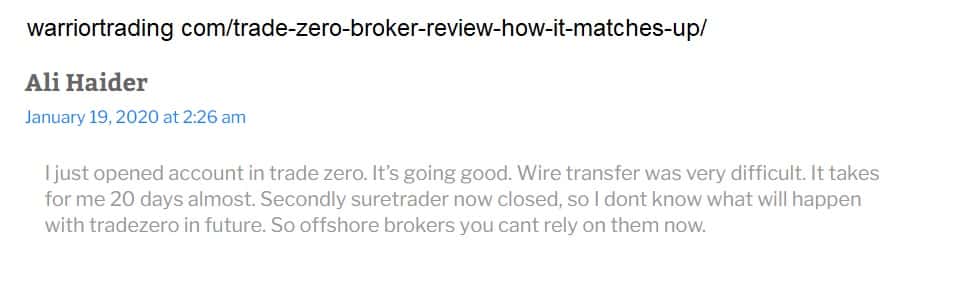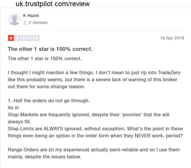 На просторах сети Интернет найти отзывы о компании TradeZero Ltd весьма сложно. Судя по отзыву, который мы смогли найти, мошенники отвечают на письма своим клиентам, но никакой поддержки не оказывают и совершенно не ценят своих вкладчиков. Можем вынести вердикт, что ТрейдЗеро Лтд - лохотрон, сюда ни в коем случае нельзя вкладывать деньги.