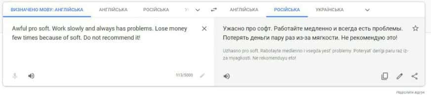 Перевод отзыва о конторе на сайте translate.google com