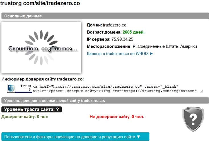 На известном сайте Доверие в Сети удалены все оценки работы ТрейдЗеро Лтд