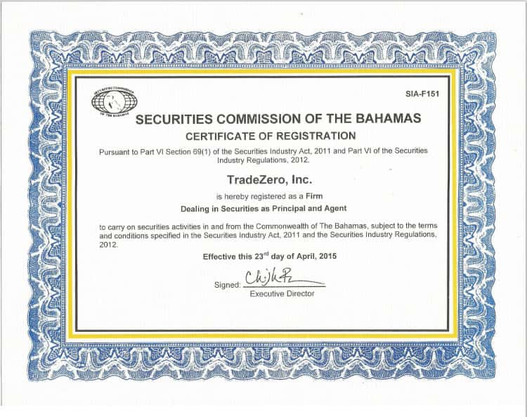 - Лицензия конторы TradeZero Ltd