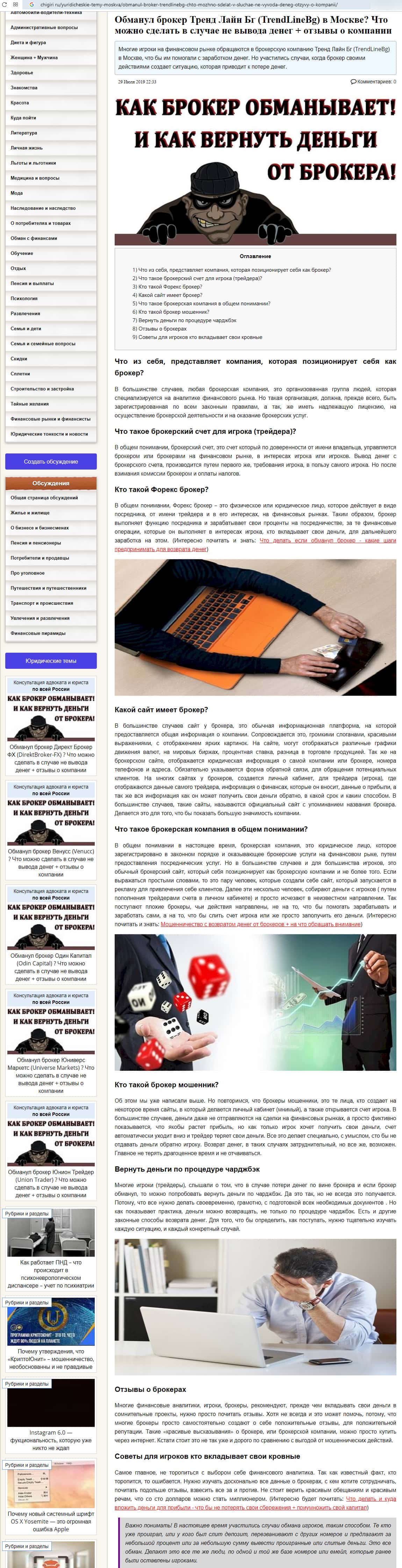 Обзоры, разоблачающие форекс кухню Тренд Лайн Бг, найденные в интернете