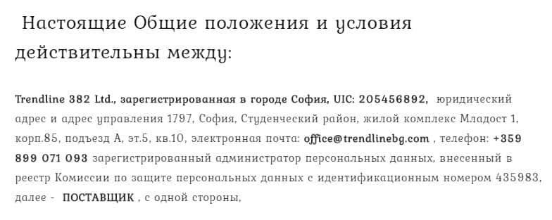 Шулеры Тренд Лайн Бг прописали, что ни поставщики, ни они собственно не несут ответственности за потери и ущерб, причиненные несчастным пользователям.