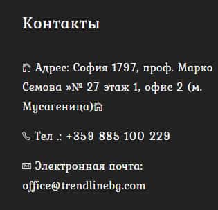 Ниже представлена контактная информация, с помощью которой можно связаться с надувательским центром Тренд Лайн Бг. Они будут использовать это для лохотрона клиентов: