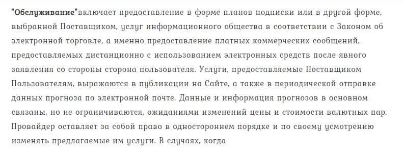 Пункт 5.9. договора гласит, что брокер Тренд Лайн Бг может изменять цены на свои услуги и условия подписки по собственному усмотрению, не предупреждая об этом заранее клиента.