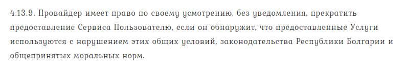В п.п. 4.13.9. идет речь о том, что для трейдерам нет ни единой гарантии со стороны TrendLineBg в адекватном функционировании и предоставлении услуг.