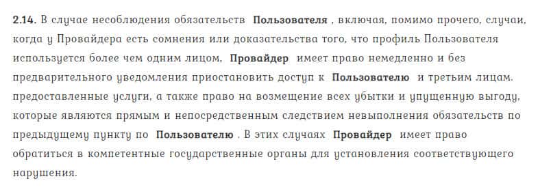 В пункте 2.14. говорится, что Тренд Лайн Бг имеет право на возмещение всех убытков и упущенной выгоды, если у него появятся сомнения на счет клиента, но это незаконно.