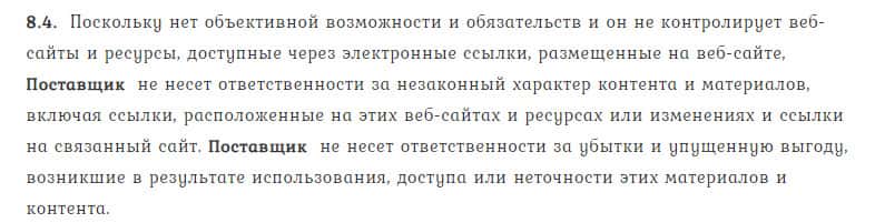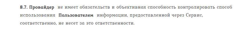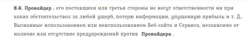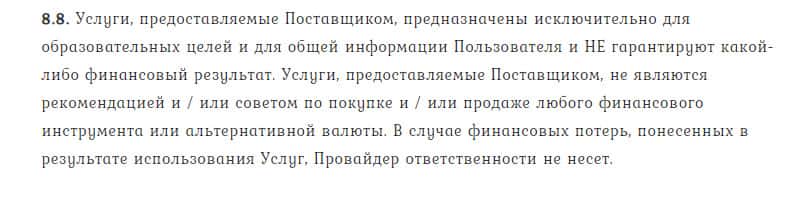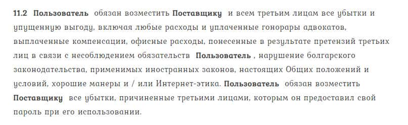 В пункте 8.7. договора лжедилер TrendLineBg указывает, что не имеет обязательств и возможностей контролировать использование сайта биржевыми игроками.