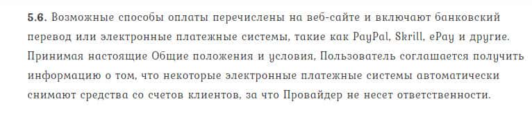 Касательно способов оплаты за предоставленные лжеброкером Тренд Лайн Бг услуги, то если деньги снимутся со счета клиента, то форекс контора не несет ответственности за это.