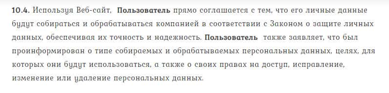 Пункт 10.4. гласит, что клиент должен согласиться на сбор и обработку персональной информации, но вот существуют ли гарантии сохранения конфиденциальности?