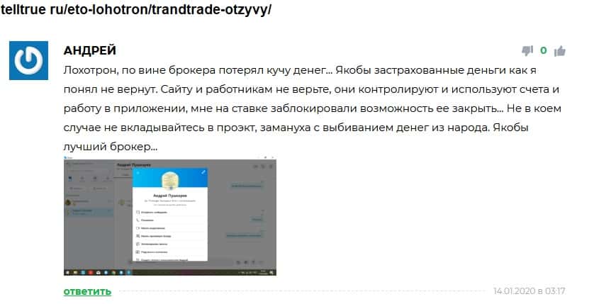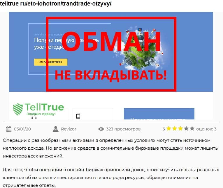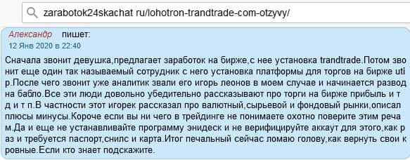 - Мнение о лохотроне TrandTrade на сайте авторитетного источника