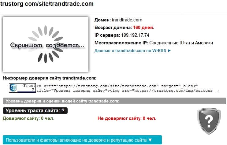 - Что можно сказать о сайте мошеннической конторы TrandTrade?