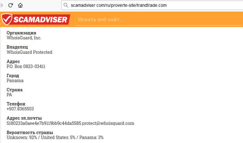 - При детальном анализе сайта мошенников Тренд Трейд всплывает, что контора находится в Панаме