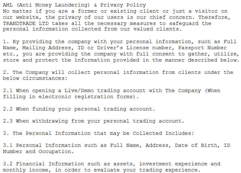 - Что можно сказать о политике конфиденциальности жуликов Тренд Трейд?