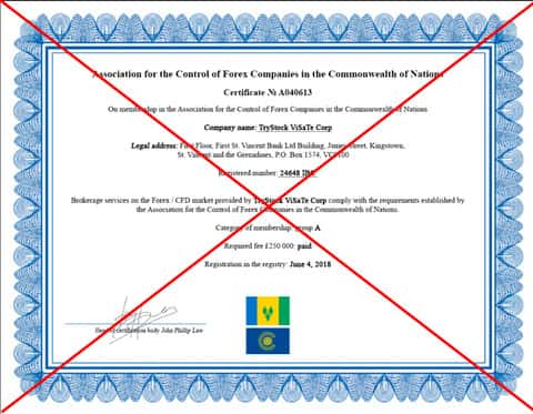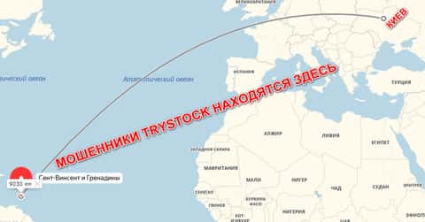 Судя по данным, представленным на сайте мошенников, юридический адрес конторы TryStock располагается в оффшор-государстве возле Карибов под названием Сент-Винсент и Гренадины. Разумеется, над оффшор-государствами не имеют власти ни одни с русскоязычных финансовых учреждений, а значит с Три Сток невозможен любой диалог на правовом поле. Находится контора якобы по адресу: