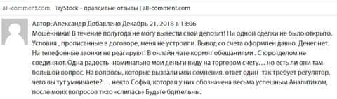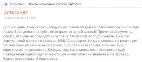 Клиент жалуется на мошенничество со стороны конторы TryStock
