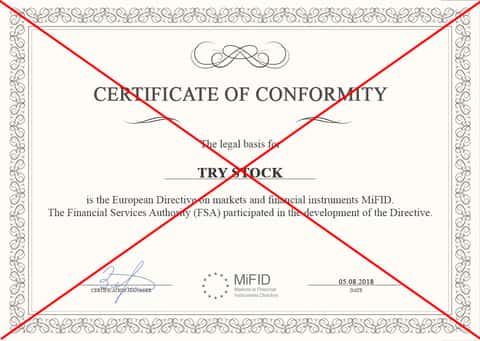 Понятное дело, развод Тру Сток или нет, это всё различные мнения, когда дело касается наполнения их сайта текстом. Полная ясность о данных жуликах приходит именно в тот момент, когда начинаешь листать их реальную документацию. Благо, мошенники TryStock пытаются дать нам бой и доказать, что они не какие-то зачуханные разводилы. Для этого они предоставляют целых три сертификата от разных учреждений. Что ж, посмотрим.