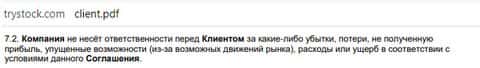 Как видите, регистрационный номер Три Сток – липа. Да и он в принципе ничего не даёт в случае с оффшор-государствами, на которые не распространяется юрисдикция ни одной из русскоязычных стран или учреждений. Понятное дело, что данный договор к самим управленцам TryStock никак не относится и никак не привлёк бы их к ответственности, но они все ровно ухищряются снять с себя ответственность за будущие убытки своих клиентов.