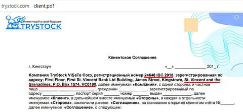 У липовой на деле конторы TryStock такой же фактически липовый договор