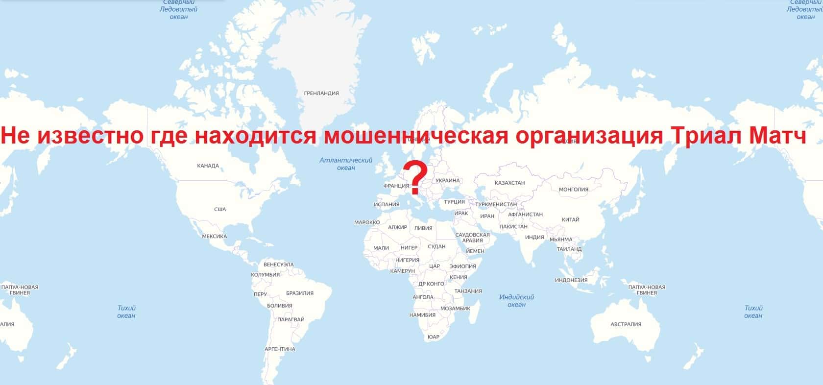 Мошенники Триал Матч на своем официальном сайте не указали юридического адреса компании, что является признаком откровенного лохотрона.