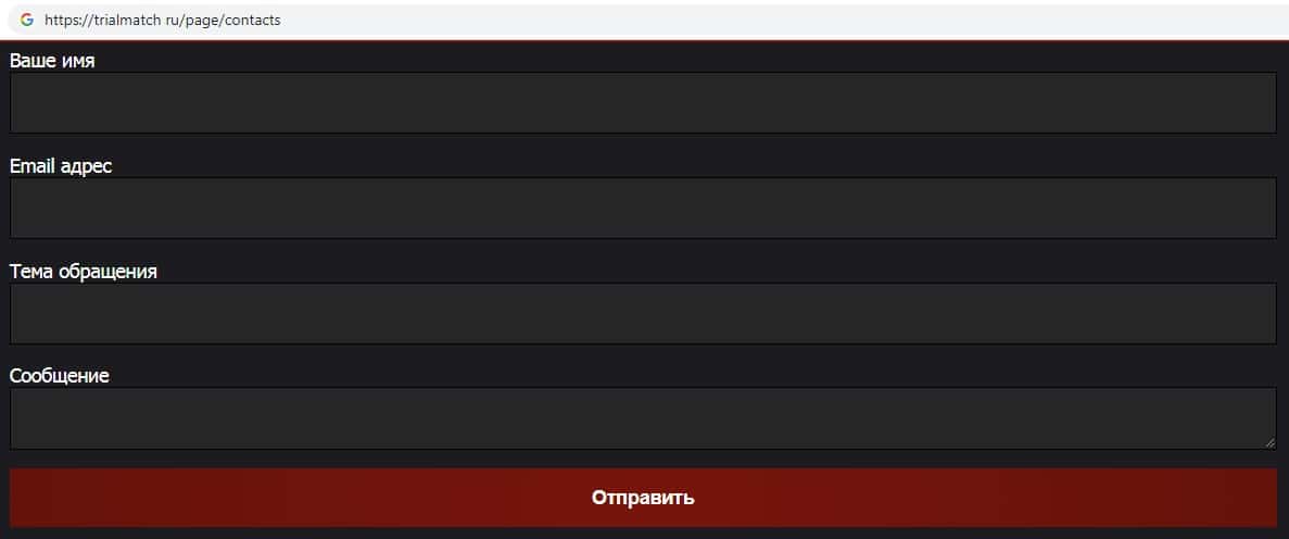 Шулера Триал Матч ведут сбор данных о посетителях своего дырявого сайта, просят указать свой адрес электронной почты в качестве обратной связи.