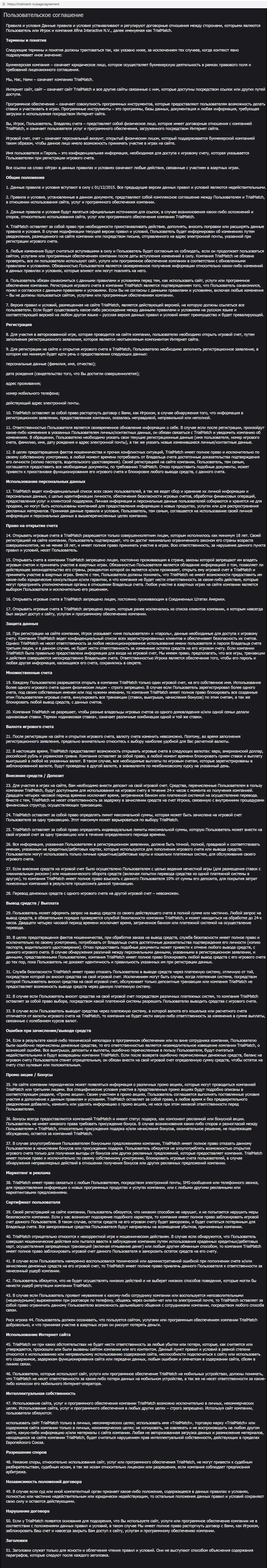 Ниже предоставлена полная версия клиентского соглашения мошеннической организации Триал Матч, которое подтверждает то, что перед нами очередной интернет-лохотрон.