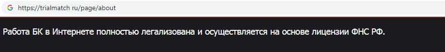 Шулера Trial Match пишут о том, что у компании есть лицензия, но при этом не предоставляют регистрационный номер.