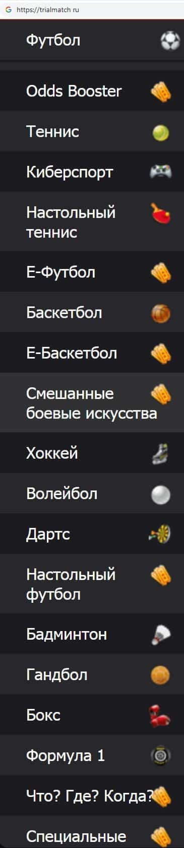 - Виды ставок на спорт на интернет-ресурсе компании Trial Match