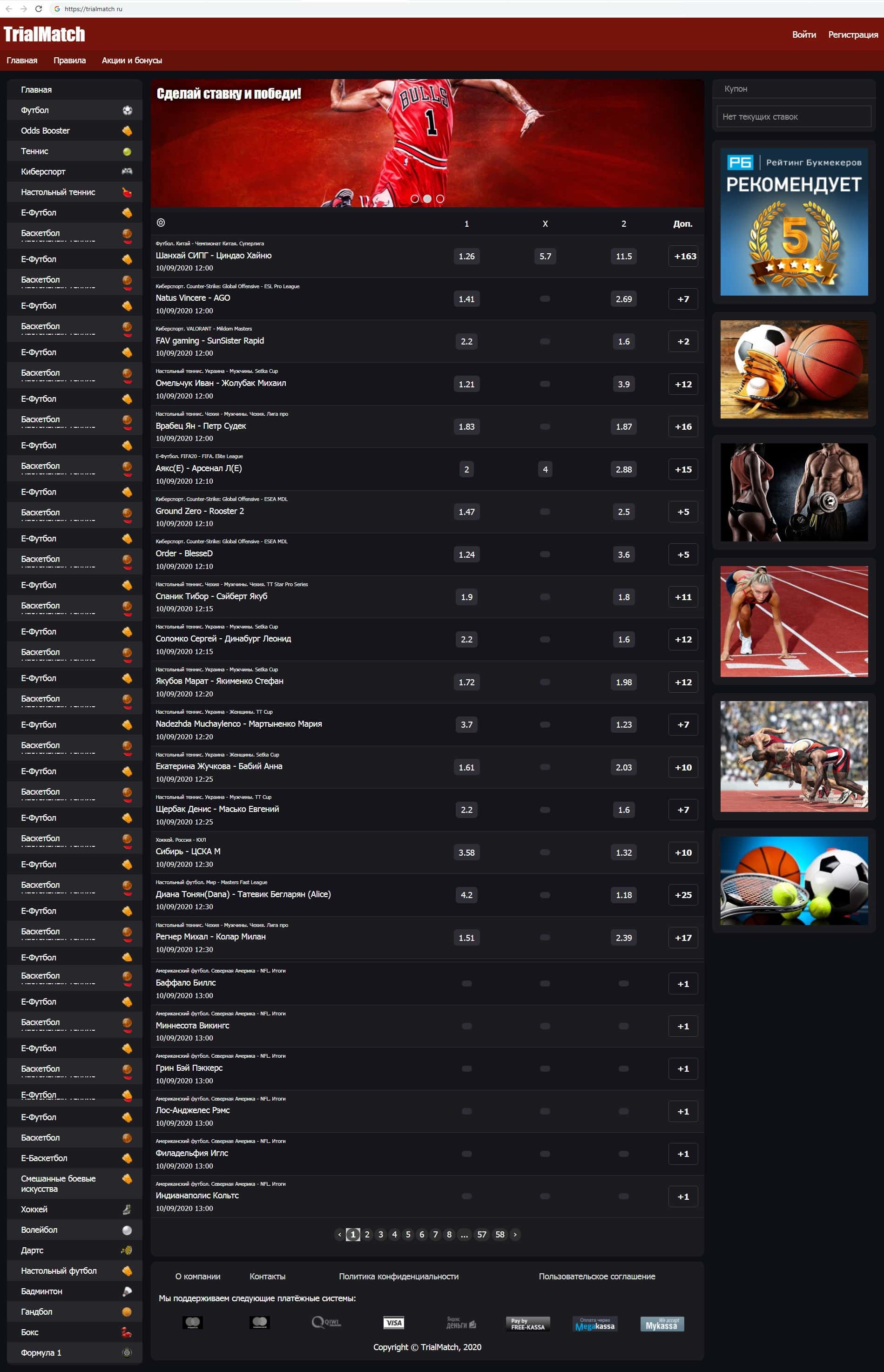 Виды ставок на спорт на интернет-ресурсе компании Trial Match