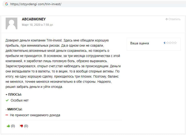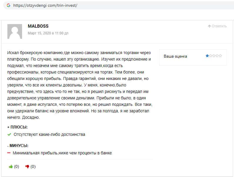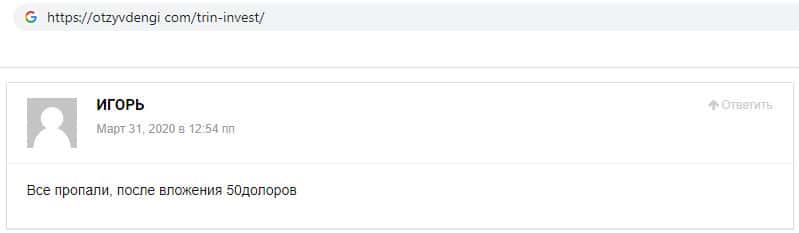 Мнение других интернет ресурсов о фирма мошенников Трин Инвест