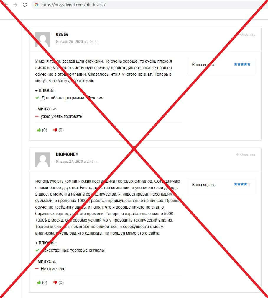 - Лохотрон Трин Инвест заказывает положительные отзывы о себе