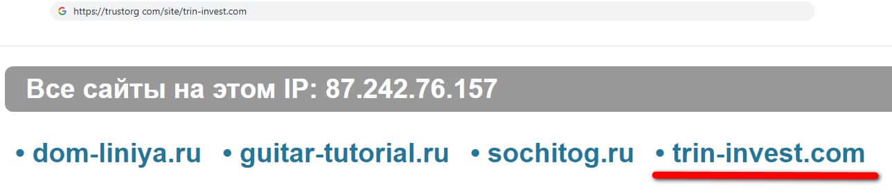 - Компания аферистов Трин Инвест длит свой айпи с другими сайтами